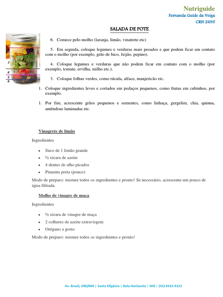 Modo de preparo: faça um molho com vinagre, azeite e coloque na primeira camada. Depois