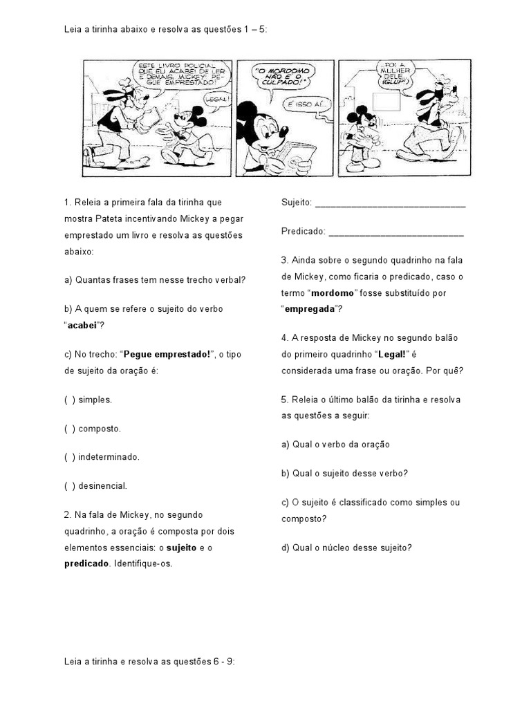 a) Quantas frases tem nesse trecho verbal? de Mickey, como ficaria o predicado, caso o