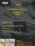 Apresentação do Arduino: É uma placa microcontroladora baseada no microcontrolador ATmega 328. Ela tem 14 pinos I/O digitais, 6