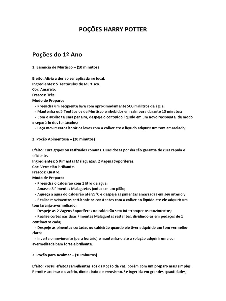 Poções do 1º Ano