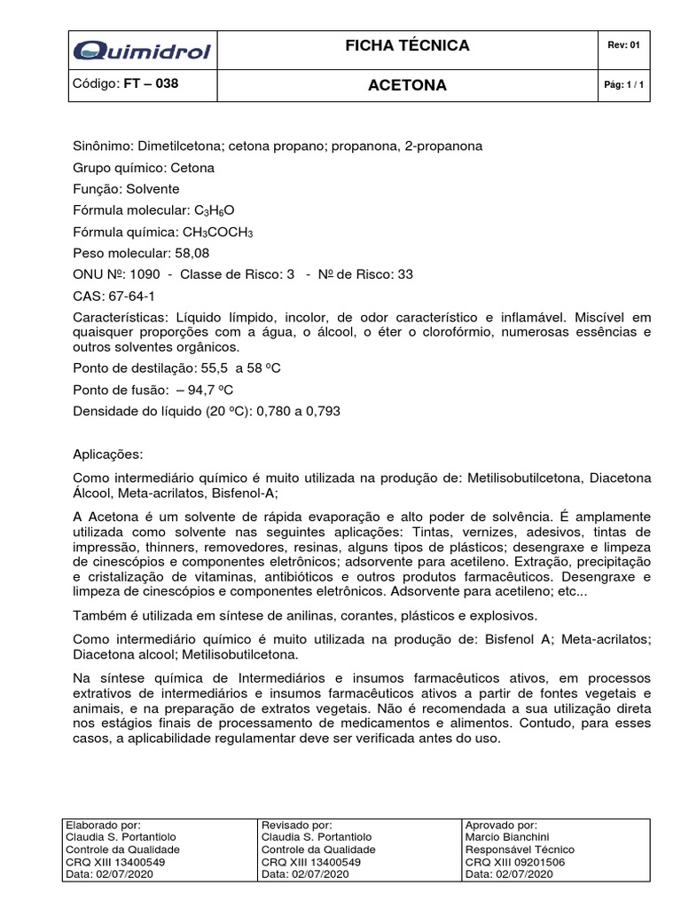 Código: FT – 038 ACETONA Pág: 1 / 1