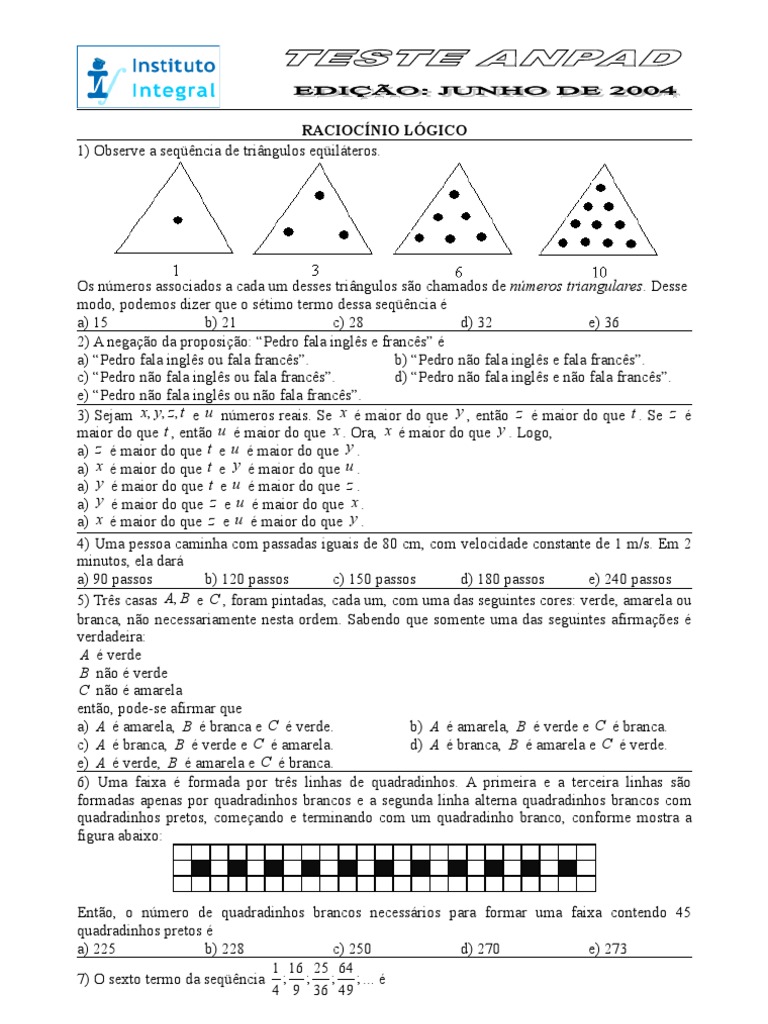 7) O sexto termo da seqüência ; ; ; ; ... é