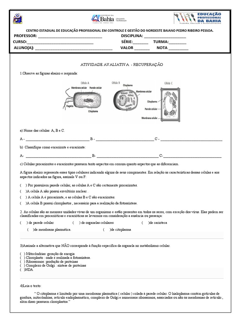 ( ) de parede celular ( ) de organelas celulares ( )de carioteca