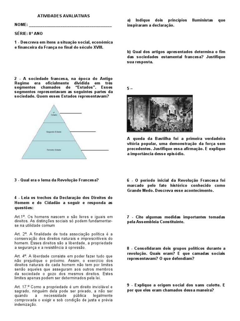 Art. 17.º Como a propriedade é um direito inviolável e 9 - Explique a origem social dos sans culotte. E