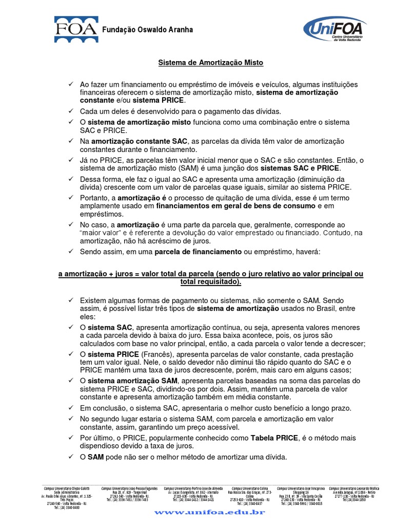 sistema de amortização misto (SAM) é uma junção dos sistemas SAC e PRICE.