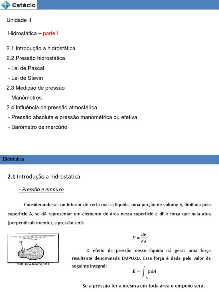 Pontos situados no mesmo nível no interior de um líquido estático apresentam a mesma