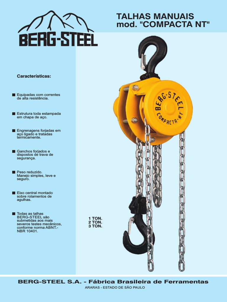 Fone: (19) 3321.0666 - Fax: (19) 3541.0507 - Araras - SP - Brasil AS TALHAS BERG-STEEL NÃO DEVEM SER