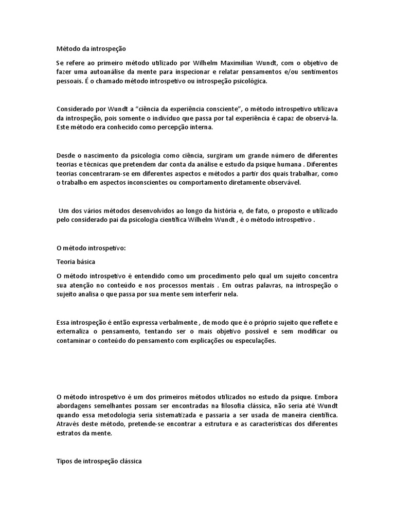 O método introspetivo: