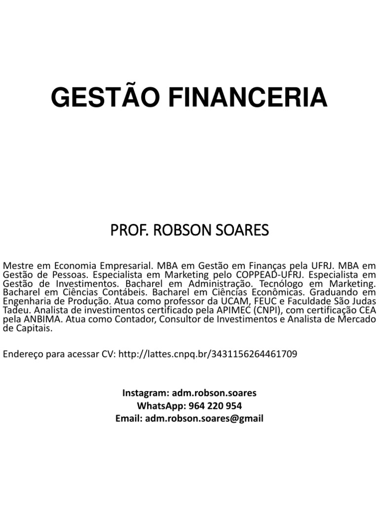 • A administração financeira é um campo de estudo teórico e prático que objetiva,