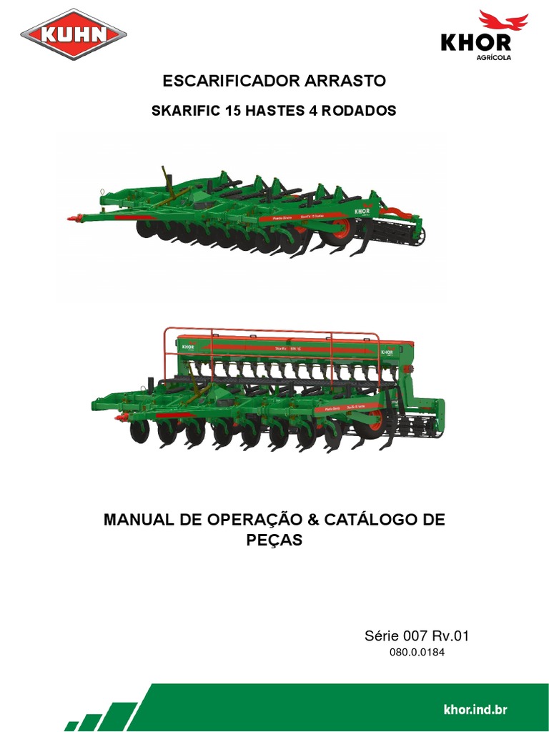 escarificador, antes de colocá-lo em operação. O mesmo também não