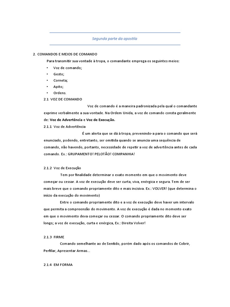 exprime verbalmente a sua vontade. Na Ordem Unida, a voz de comando consta geralmente