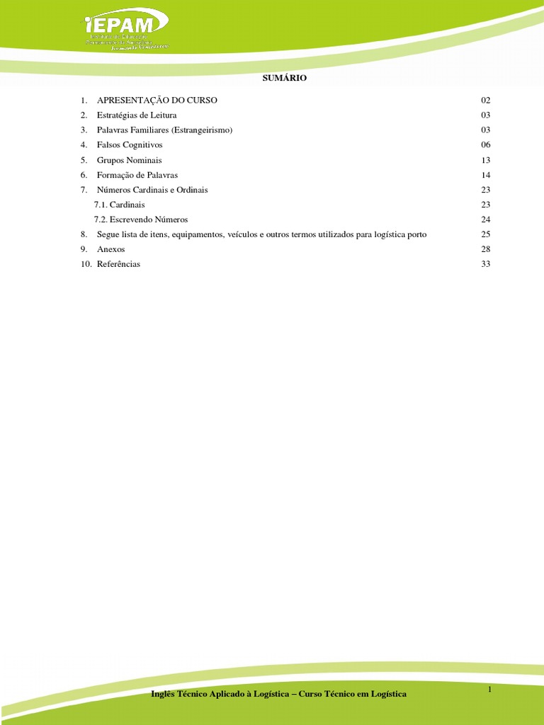 Inglês Técnico Aplicado à Logística – Curso Técnico em Logística