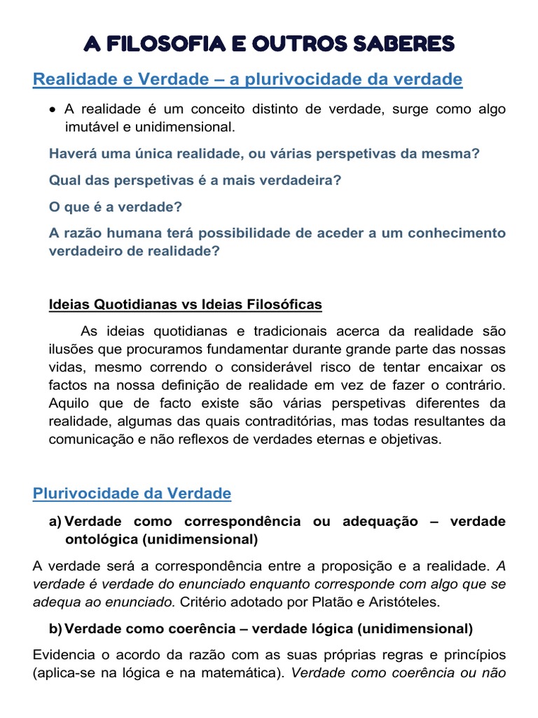 Realidade e Verdade – a plurivocidade da verdade