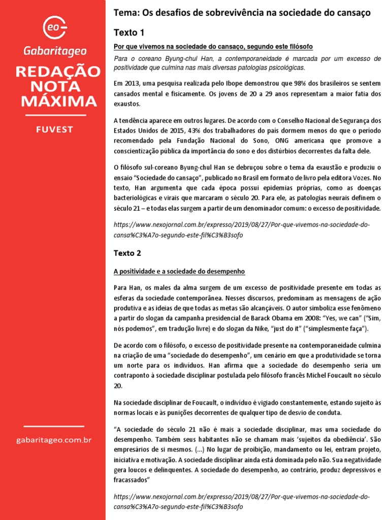 Tema: Os desafios de sobrevivência na sociedade do cansaço