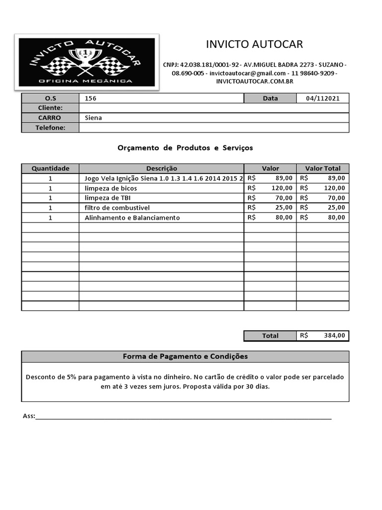1 Alinhamento e Balanciamento R$ 80,00 R$ 80,00