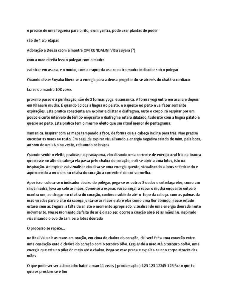 Quando disser Suyaha libera-se a energia para a deusa progetando-se através do chakkra cardiaco
