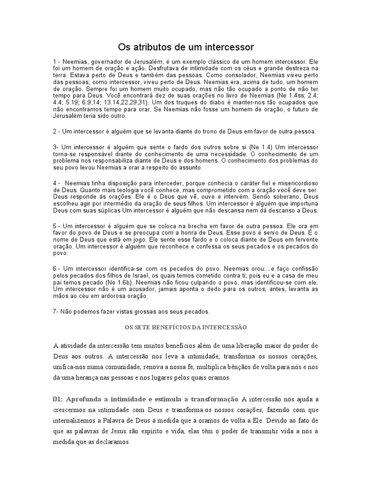 oração. Um intercessor é alguém que reconhece e confessa os seus pecados e os pecados do