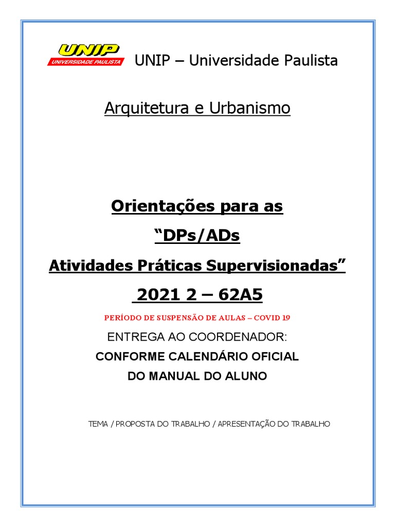 acompanhamento das “Atividades Práticas Supervisionadas”, ilustrando