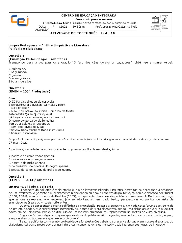 ATIVIDADE DE PORTUGUÊS - Lista 18