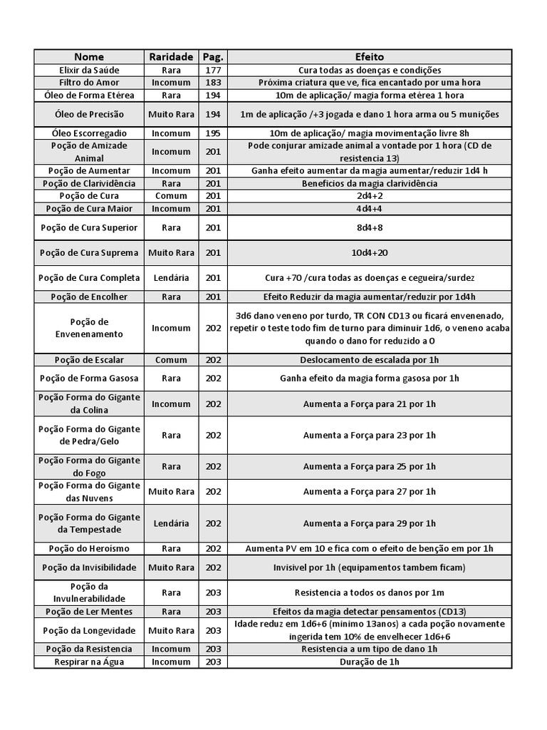 Poção da Resistencia Incomum 203 Resistencia a um tipo de dano 1h