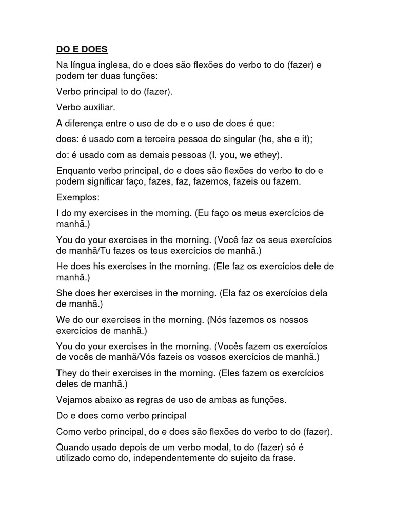Do e does como verbo auxiliar