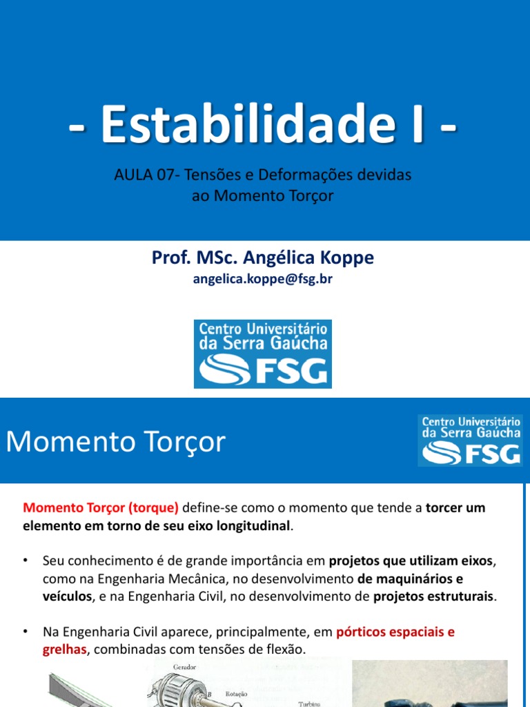 Momento Torçor (torque) define-se como o momento que tende a torcer um