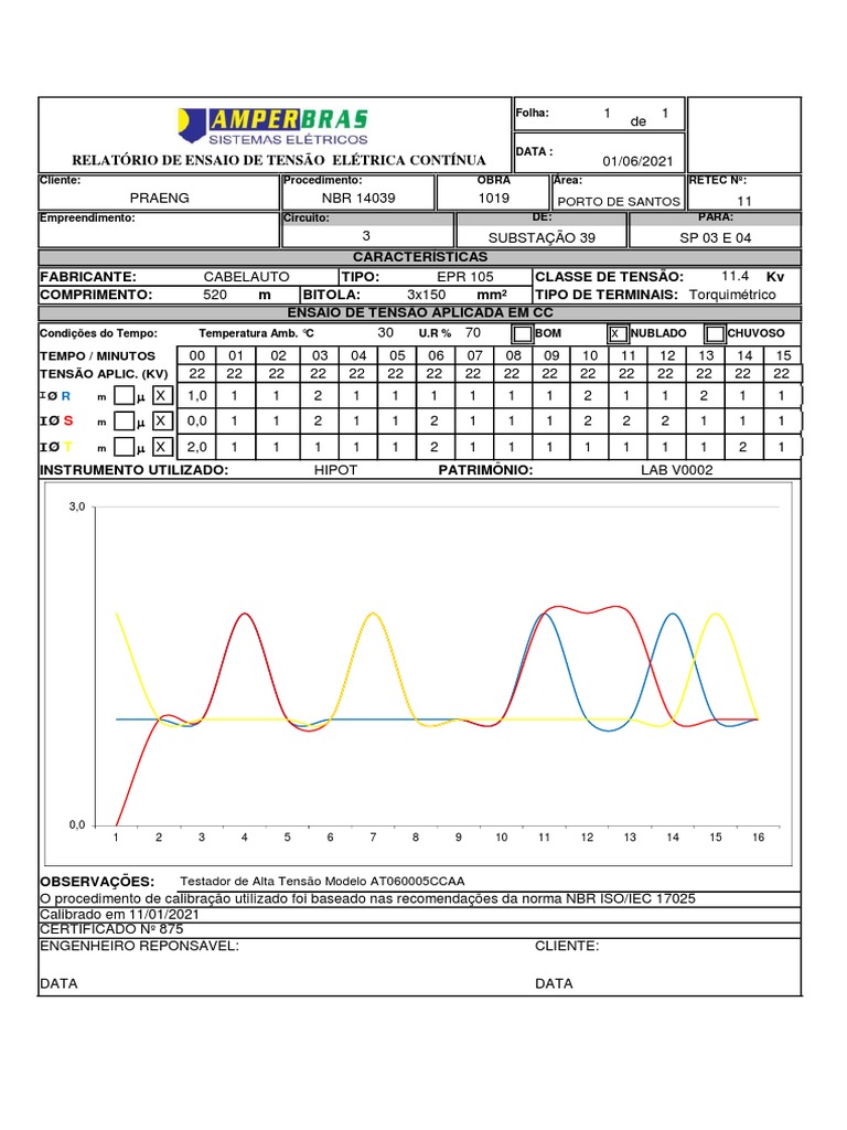 RELATÓRIO DE ENSAIO DE TENSÃO ELÉTRICA CONTÍNUA 01/06/2021