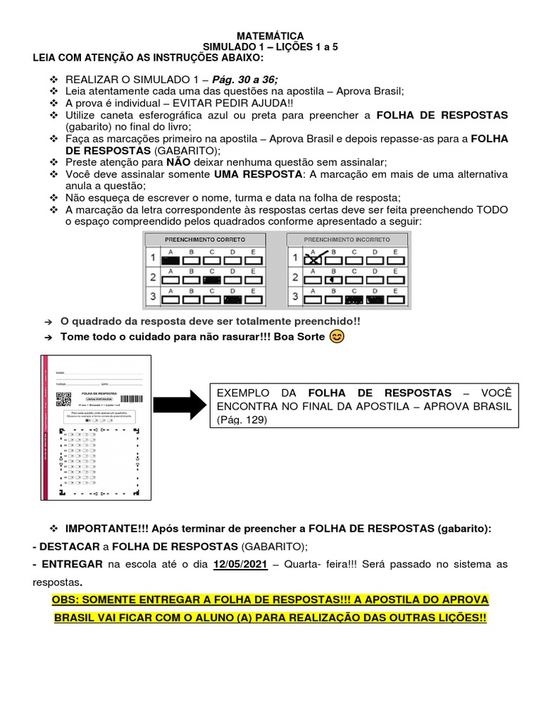 OBS: SOMENTE ENTREGAR A FOLHA DE RESPOSTAS!!! A APOSTILA DO APROVA