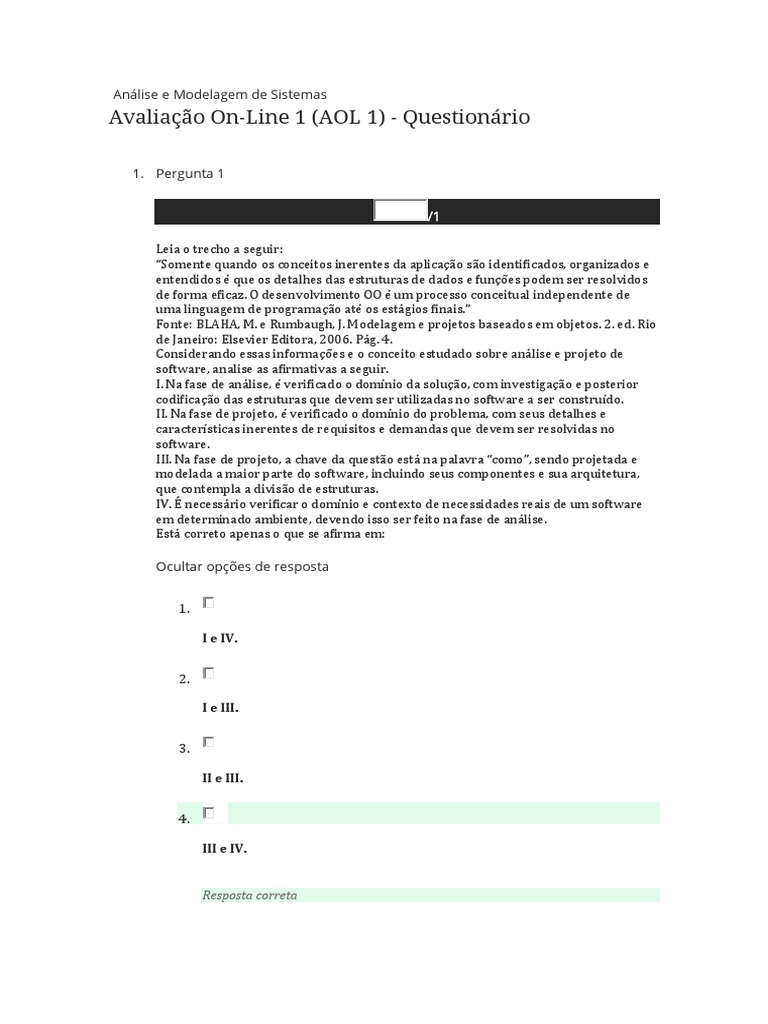 Avaliação On-Line 1 (AOL 1) - Questionário