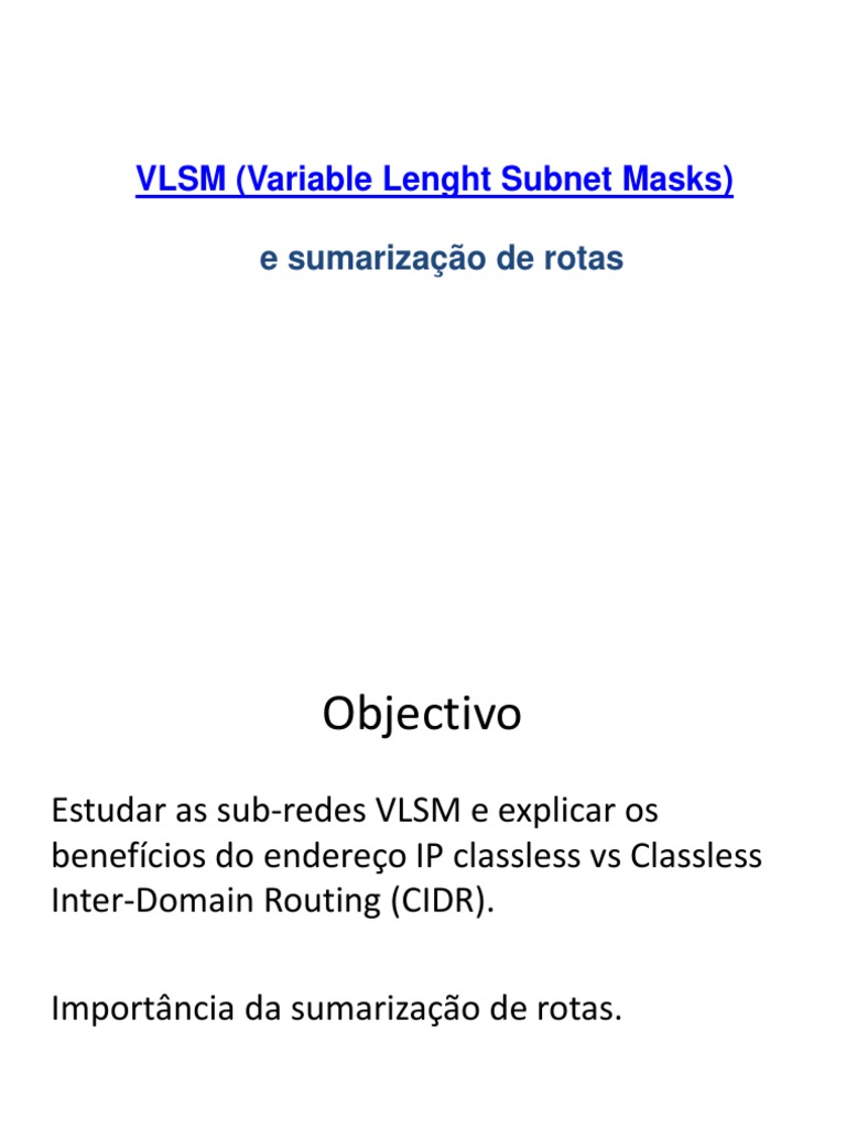a) Faça uma tabela VLSM de acordo com os cabeçalhos abaixo.