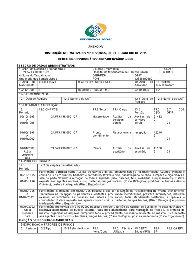 PERFIL PROFISSIOGRÁFICO PREVIDENCIÁRIO – PPP