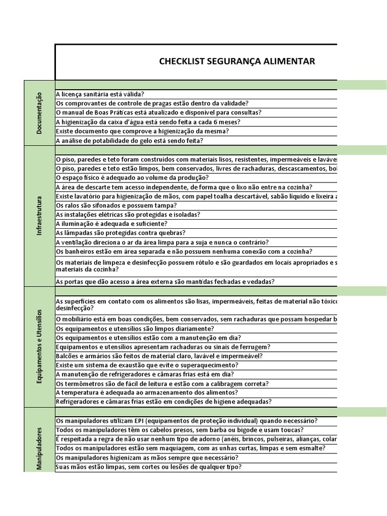 CHECKLIST SEGURANÇA ALIMENTAR