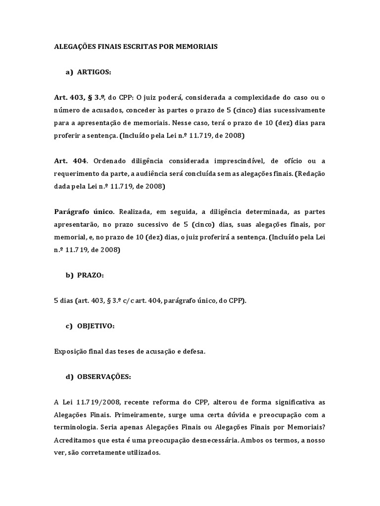 pelo art. 403 § 3.º, do CPP. Essas hipóteses possibilitam a apresentação das