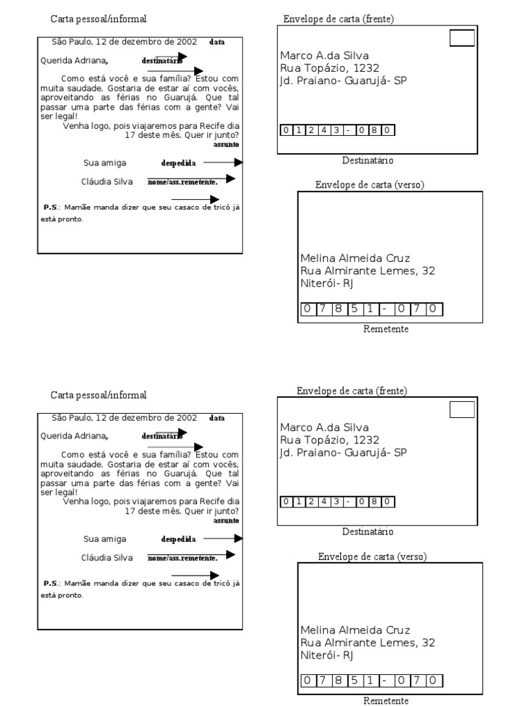 Cláudia Silva nome/[Link]. Envelope de carta (verso)