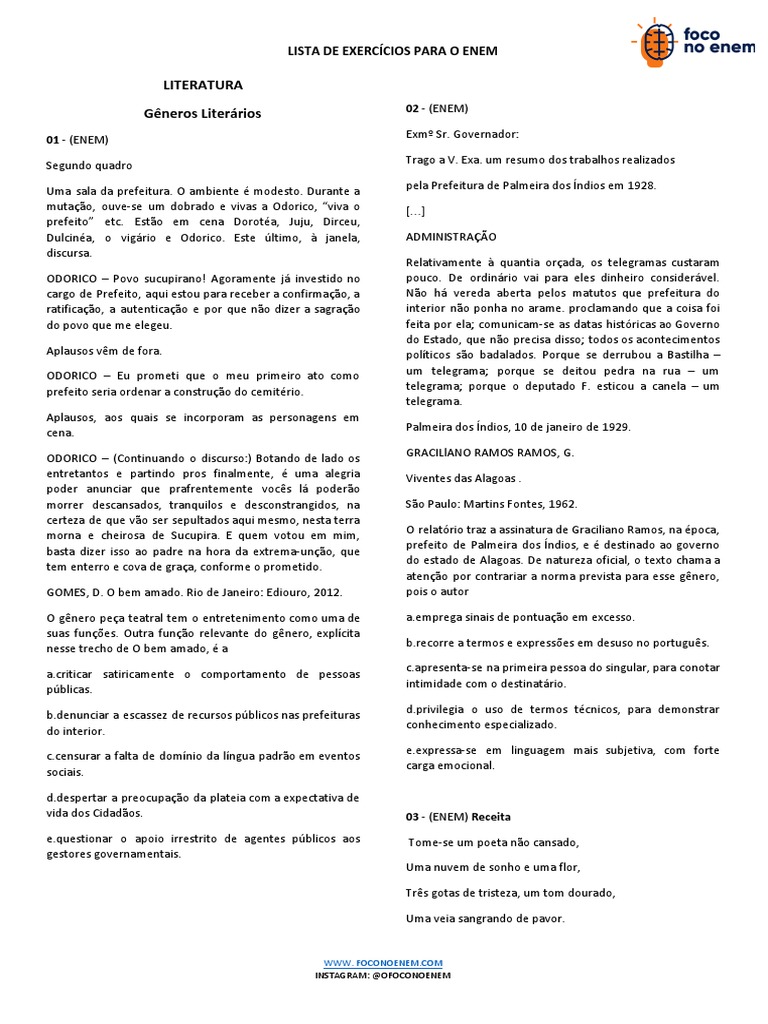 LISTA DE EXERCÍCIOS PARA O ENEM