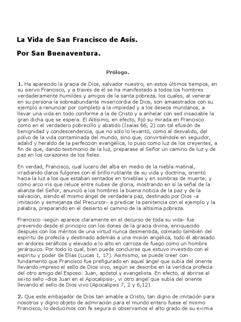 5. El principio, desarrollo y término de la vida de Francisco están descritos en los