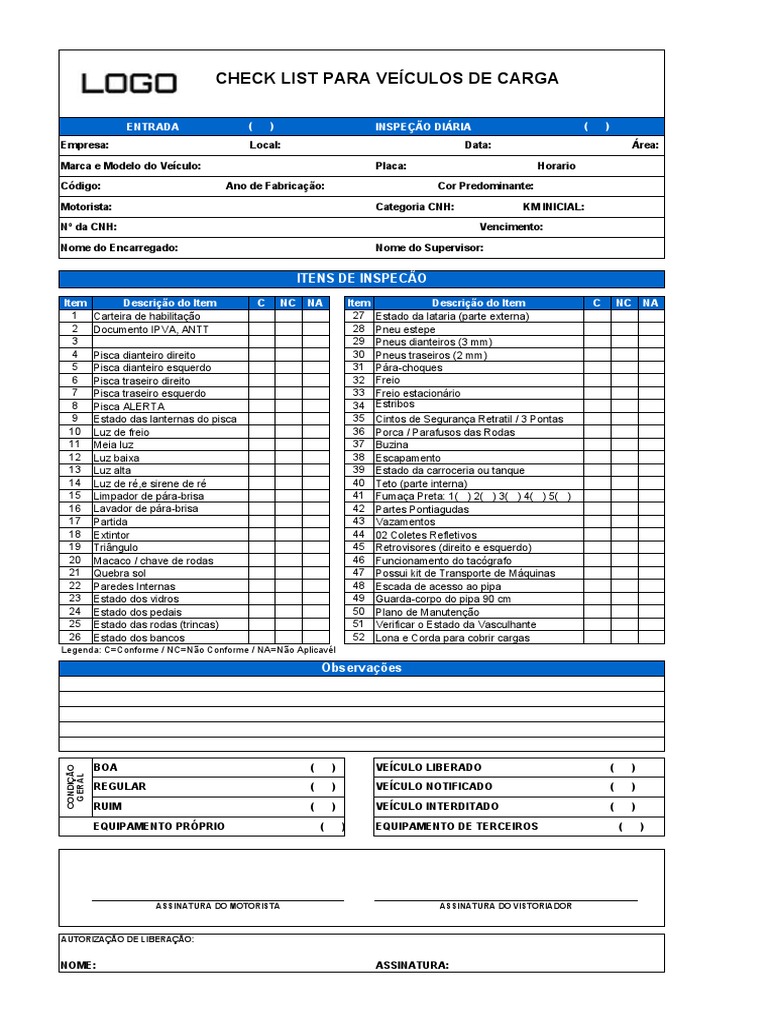 CHECK LIST PARA VEÍCULOS DE CARGA