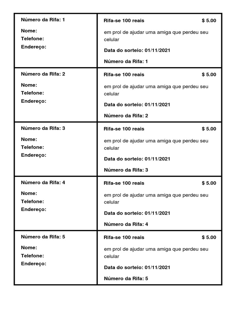 Número da Rifa: 5 Rifa-se 100 reais $ 5.00