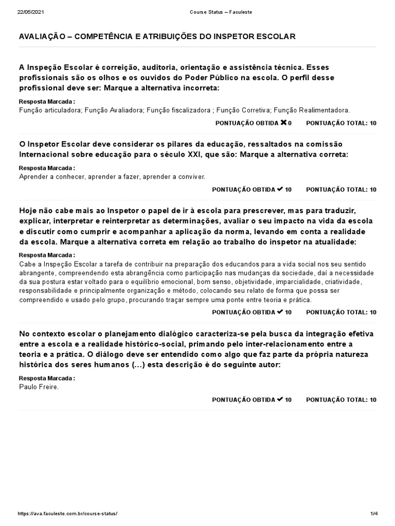 AVALIAÇÃO – COMPETÊNCIA E ATRIBUIÇÕES DO INSPETOR ESCOLAR