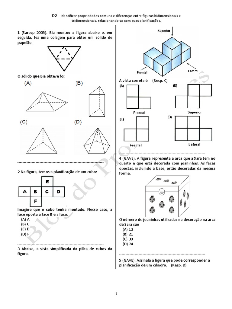 2 Na figura, temos a planificação de um cubo: forma.