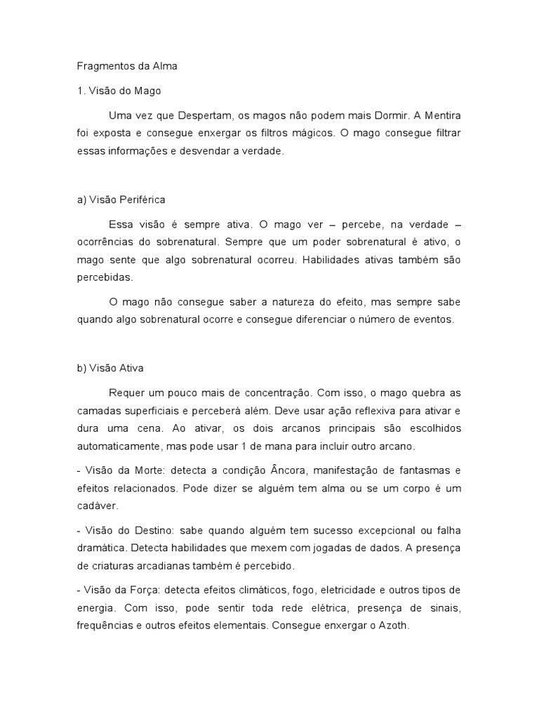 mago sente que algo sobrenatural ocorreu. Habilidades ativas também são