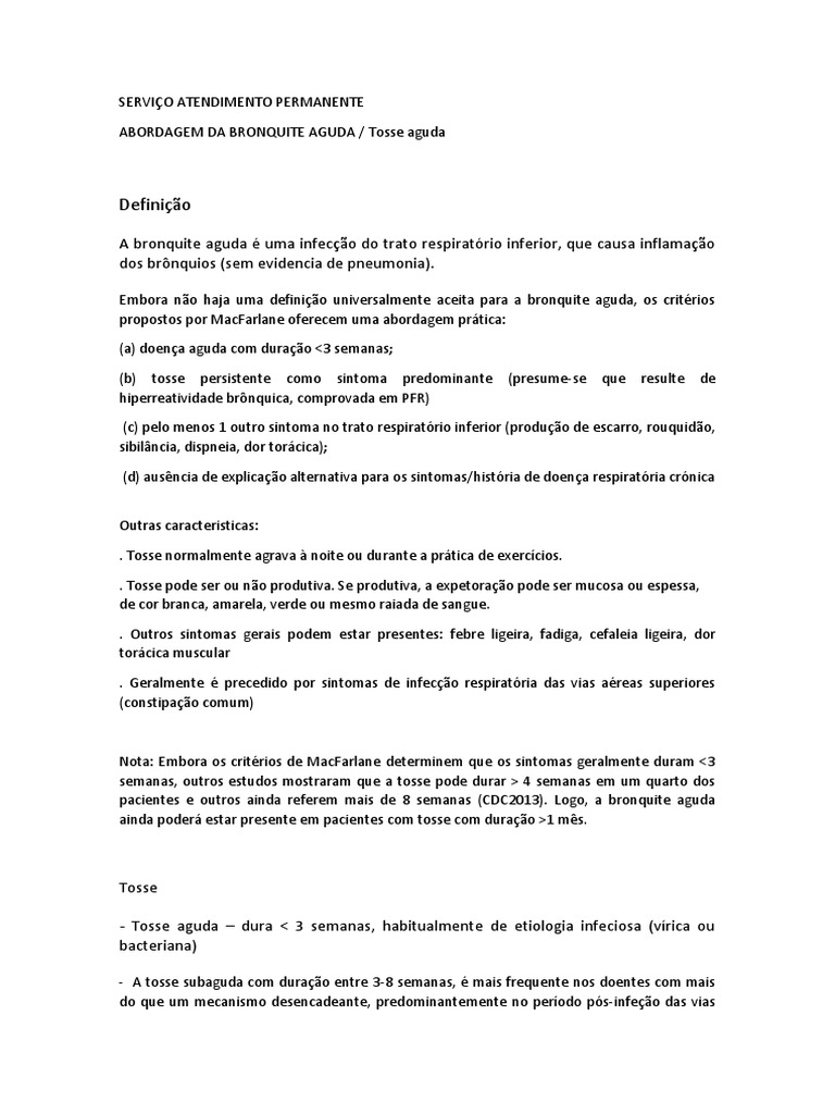 ABORDAGEM DA BRONQUITE AGUDA / Tosse aguda