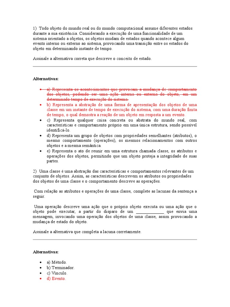 1) Todo objeto do mundo real ou do mundo computacional assume diferentes estados