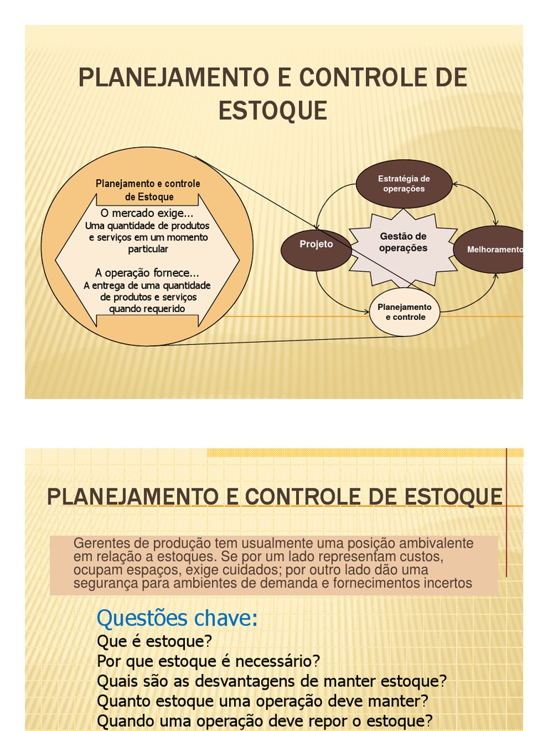 PLANEJAMENTO E CONTROLE DE ESTOQUE