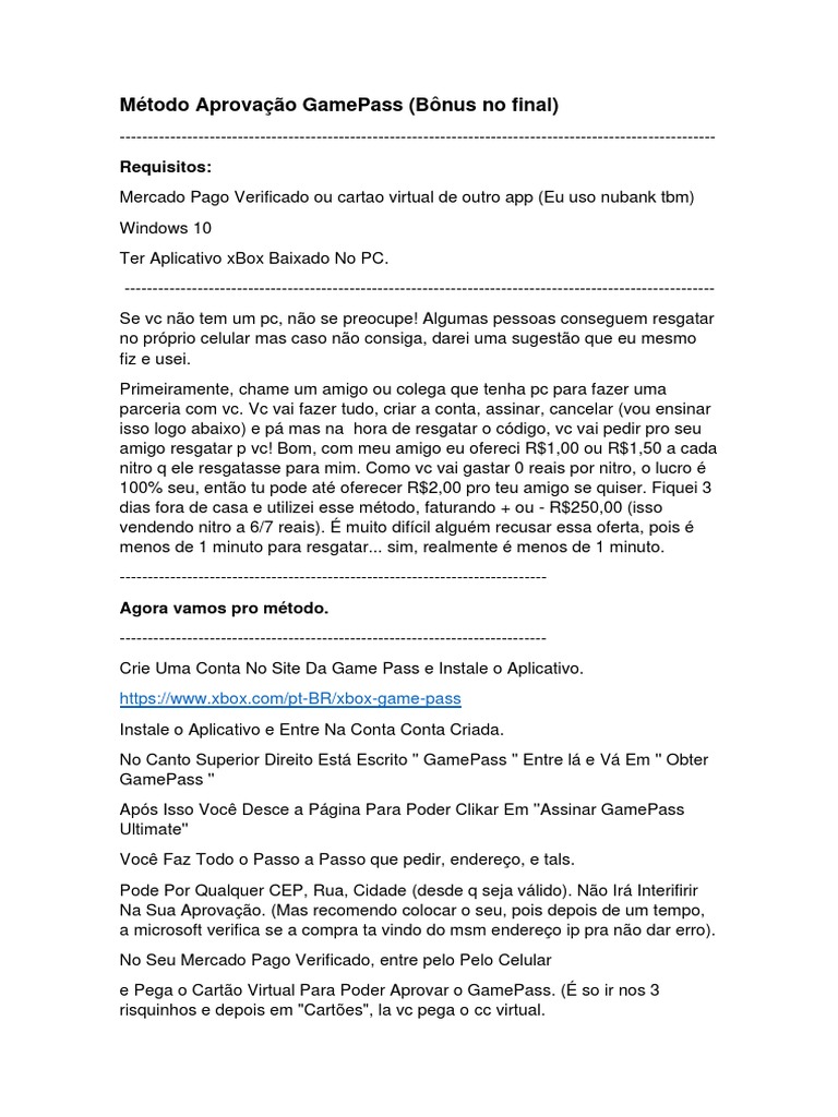 e Pega o Cartão Virtual Para Poder Aprovar o GamePass. (É so ir nos 3