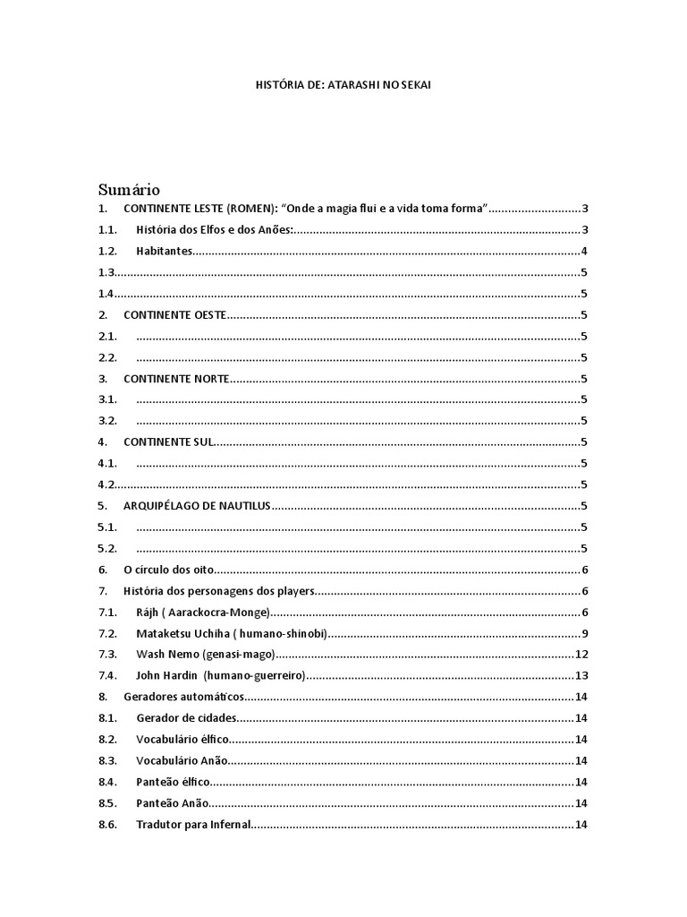 1. CONTINENTE LESTE (ROMEN): “Onde a magia flui e a vida toma forma”............................3