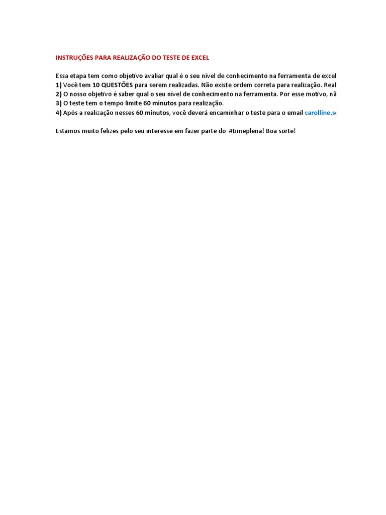 4) Após a realização nesses 60 minutos, você deverá encaminhar o teste para o email [Link]@plenaalime