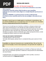 2. Ingratidão abre espaço para o destruidor. 3. Dar graças por tudo.