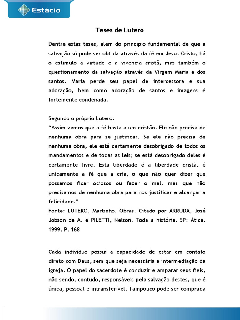 Fonte: LUTERO, Martinho. Obras. Citado por ARRUDA, José