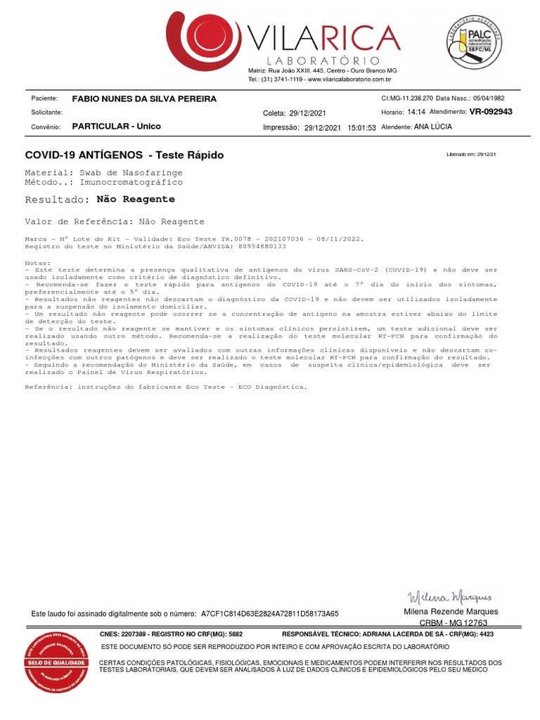 COVID-19 ANTÍGENOS - Teste Rápido Liberado em: 29/12/21